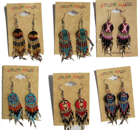 ROUND SHAPED NATIVE STYLE SEED BEAD DANGLE EARRINGS ( sold by the dozen or piece )